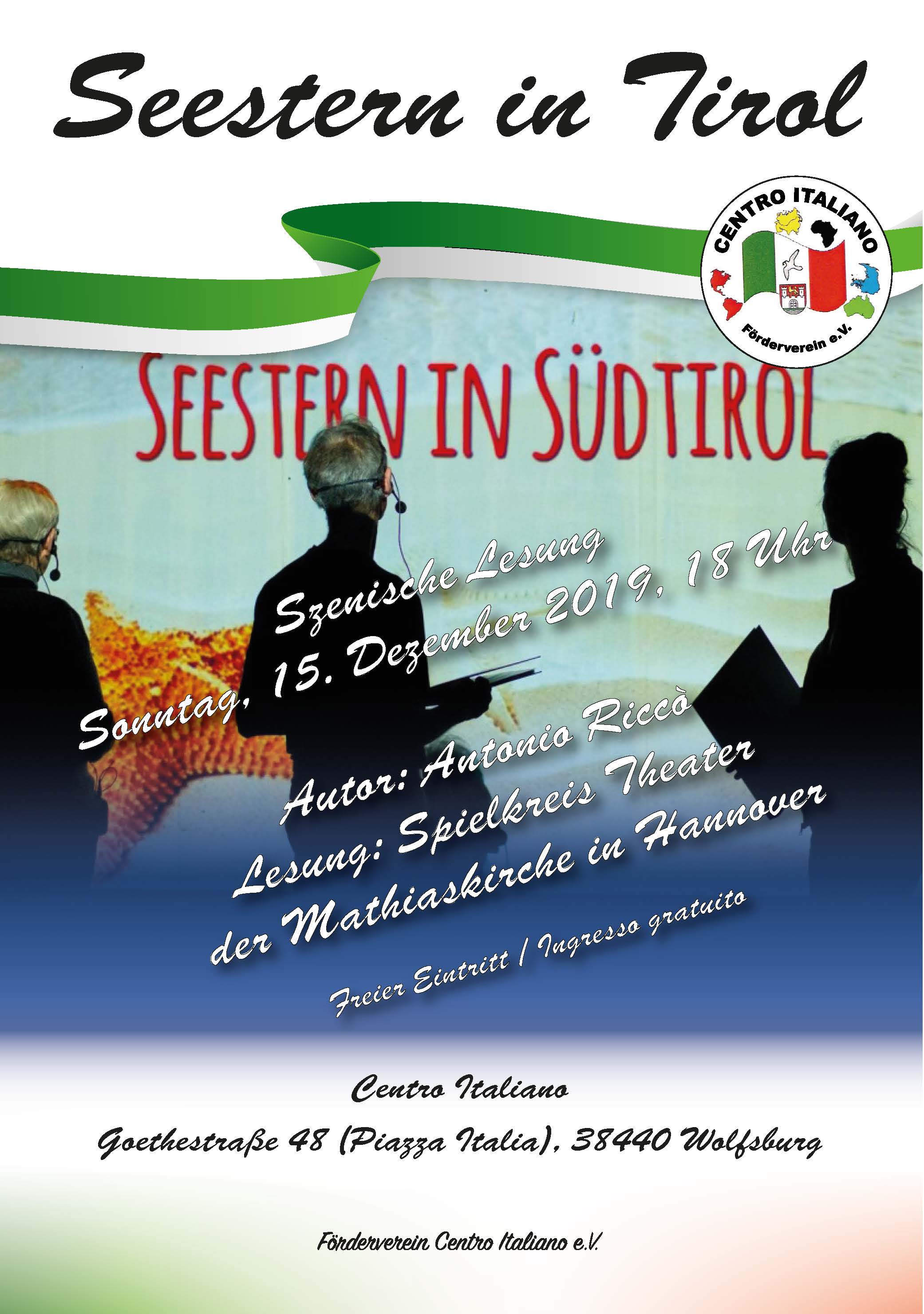 In einer szenischen Lesung führte der Spielkreis Theater der Mathiaskirche in Hannover am Sonntag, 15. Dezember, von 18 Uhr an, im Centro Italiano (Piazza Italia) das Stück „Seestern in Südtirol“ von Antonio Riccò in szenischer Lesung auf. Der damals 14-jährige Alidas Shiri wurde auf der Brenner-Autobahn nahe Brixens am 22. August 2005 aufgegriffen. Von Venedig bis Südtirol lag er unter einem Lastwagen angebunden auf einer Achse. Drei Erzähler erzählten seine Geschichte und spiegelten Zweifel und Vorurteile in unserer Gesellschaft wider: Angst und Ablehnung, Solidarität und Unterstützung. Der mittlerweile junge Mann kommentierte seine Flucht in zehn Videos. Es ist eine wahre, berührende Geschichte. Der Autor, Antonio Riccò, befasst sich mit dem Schicksal von Flüchtlingen, seit der Junge aus Afghanistan in die damals von ihm geleitete Schule in Meran aufgenommen wurde. Er schrieb inzwischen mehrere Romane darüber, die auch in Italien veröffentlicht wurden.
